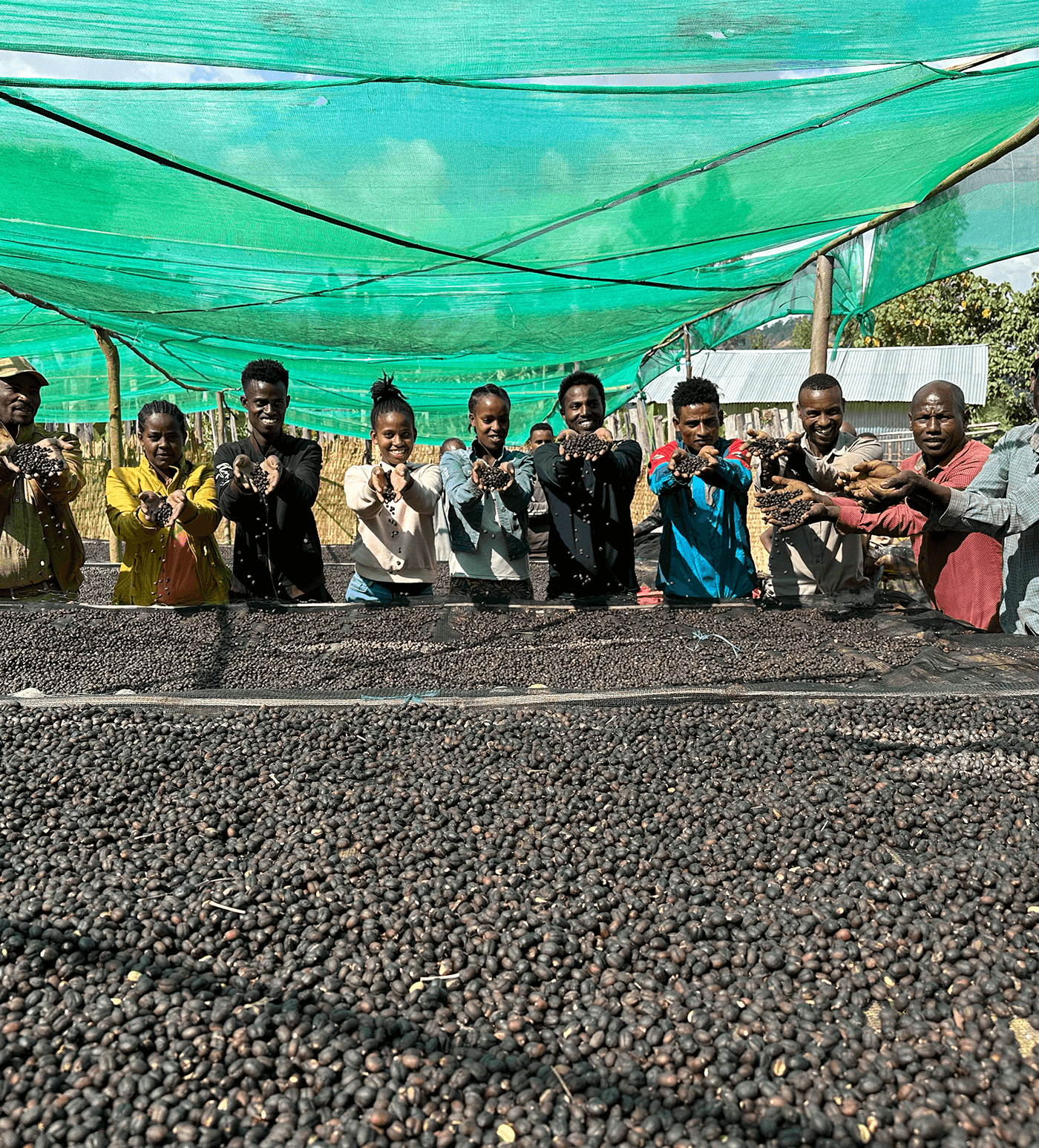 This natural lot reflects both Bensa’s high elevation and Bekele’s careful drying practices. At 2.200 meters. cooler conditions slow cherry maturation. supporting sugar development and clarity. Extended drying over 22 to 25 days deepens fruit density and builds a creamy texture. while careful flotation ensures uniform ripeness. Together. these steps produce a fruit-forward profile that feels polished and intentional rather than heavy.